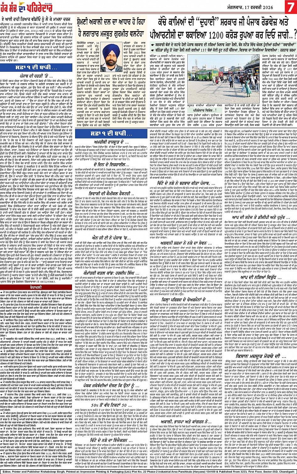 17-02-2026 Page: 7 February 17, 2026 17-02-2026 << First << 7 >> Last >> Page 1Page 2Page 3Page 4Page 5Page 6Page 7Page 8Page 9Page 10 × 17-02-2026 << First << 7 >> Last >> Page 1-page-001Page 2-page-001Page 3-page-001Page 4-page-001Page 5-page-001Page 6-page-001Page 7-page-001Page 8-page-001Page 9 pehredsar-page-001Page 10 pehredar-page-001 Page 7-page-001