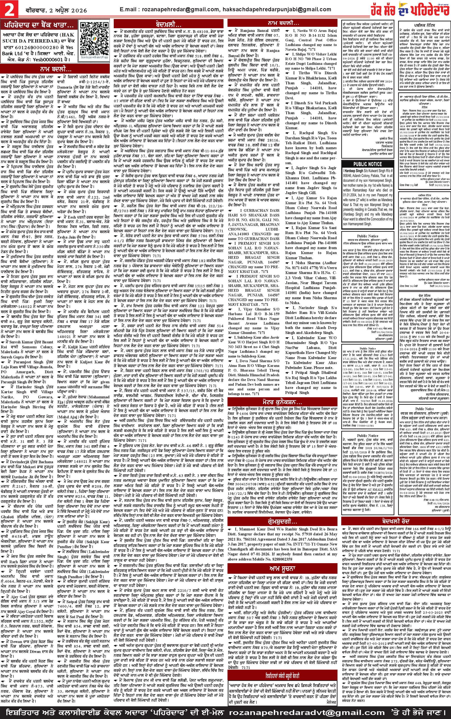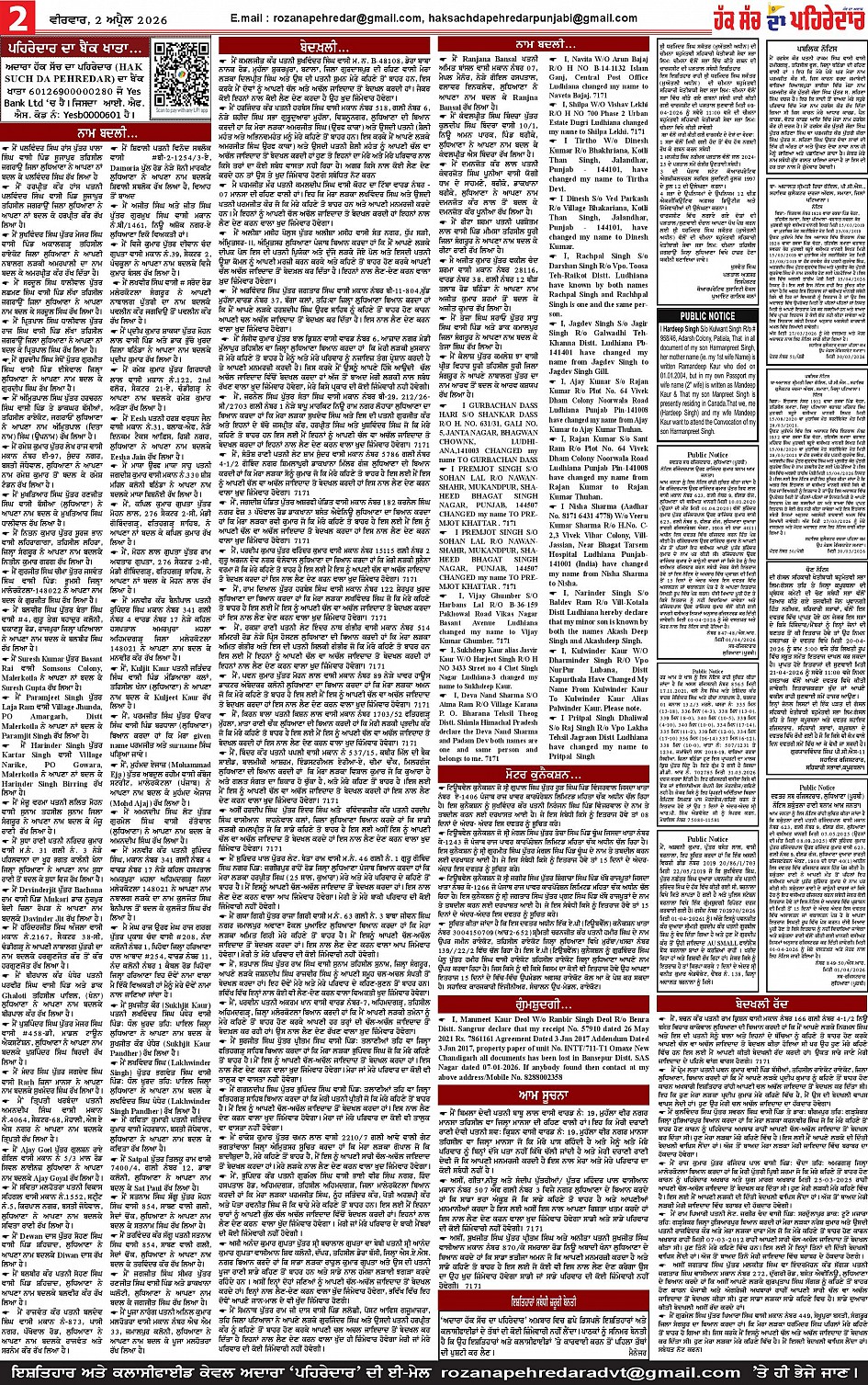 02-04-2026 Page: 2 April 02, 2026 02-04-2026 << First << 2 >> Last >> Page 1Page 2Page 3Page 4Page 5Page 6Page 7Page 8Page 9Page 10Page 11Page 12Page 13 × 02-04-2026 << First << 2 >> Last >> Page 1-page-001Page 2-page-001Page 3-page-001Page 4-page-001Page 5-page-001Page 6-page-001Page 7-page-001Page 8-page-001Page 9 pehredar-page-001Page 10 pehredar-page-001Page 11 pehredar-page-001Page 12-page-001Page 13-page-001 Page 2-page-001