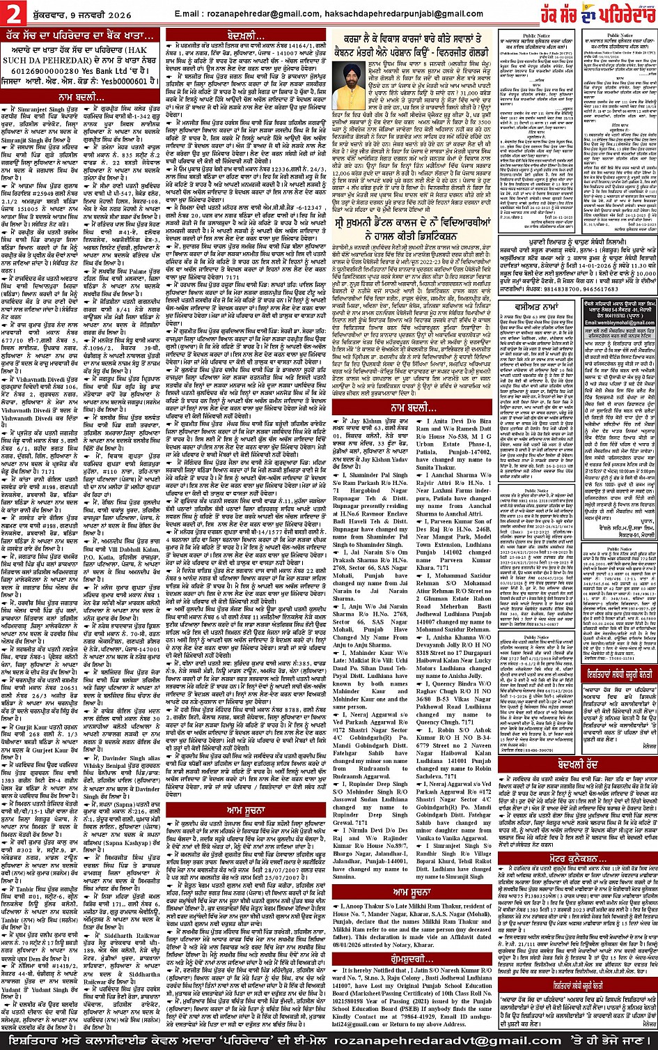 09-01-2026 Page: 2 January 09, 2026 09-01-2026 << First << 2 >> Last >> Page 1Page 2Page 3Page 4Page 5Page 6Page 7Page 8Page 9Page 10Page 11 × 09-01-2026 << First << 2 >> Last >> Page 1-page-001Page 2-page-001Page 3-page-001Page 4-page-001Page 5-page-001Page 6-page-001Page 7-page-001Page 8-page-001Page 9 pehredar-page-001Page 10 pehredra-page-001Page 11-page-001 Page 2-page-001